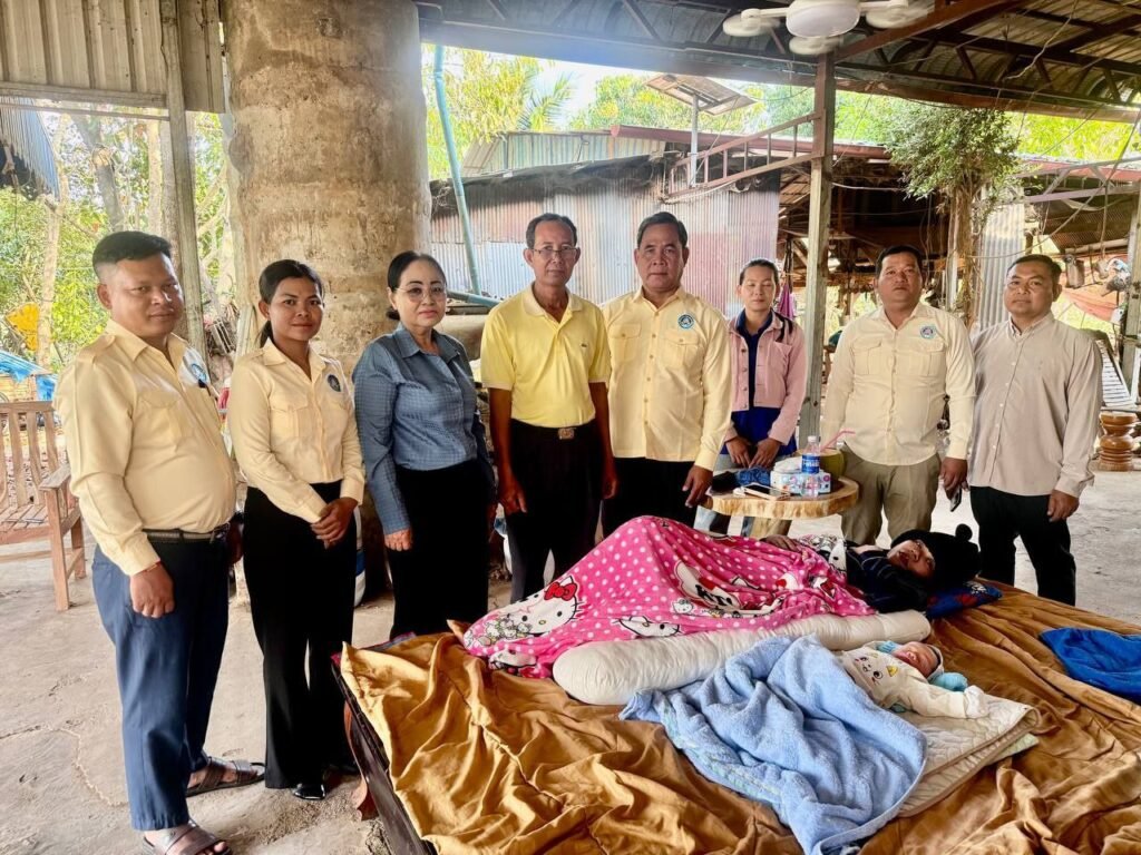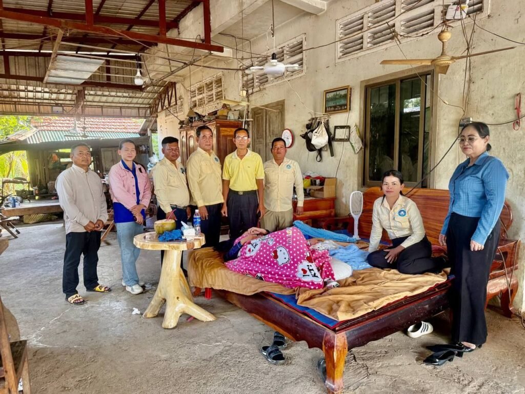 លោក មុំ ភីរិទ្ធ អនុប្រធានសមាគមសម្ព័ន្ធសារព័ត៌មានឯករាជ្យ ខេត្តបាត់ដំបង និងក្រុមការងារអញ្ជើញចុះសួរសុខទុក្ខ និងនាំយកថវិកា ប្រគល់ជូនលោកស្រី វន ស្រីនិច