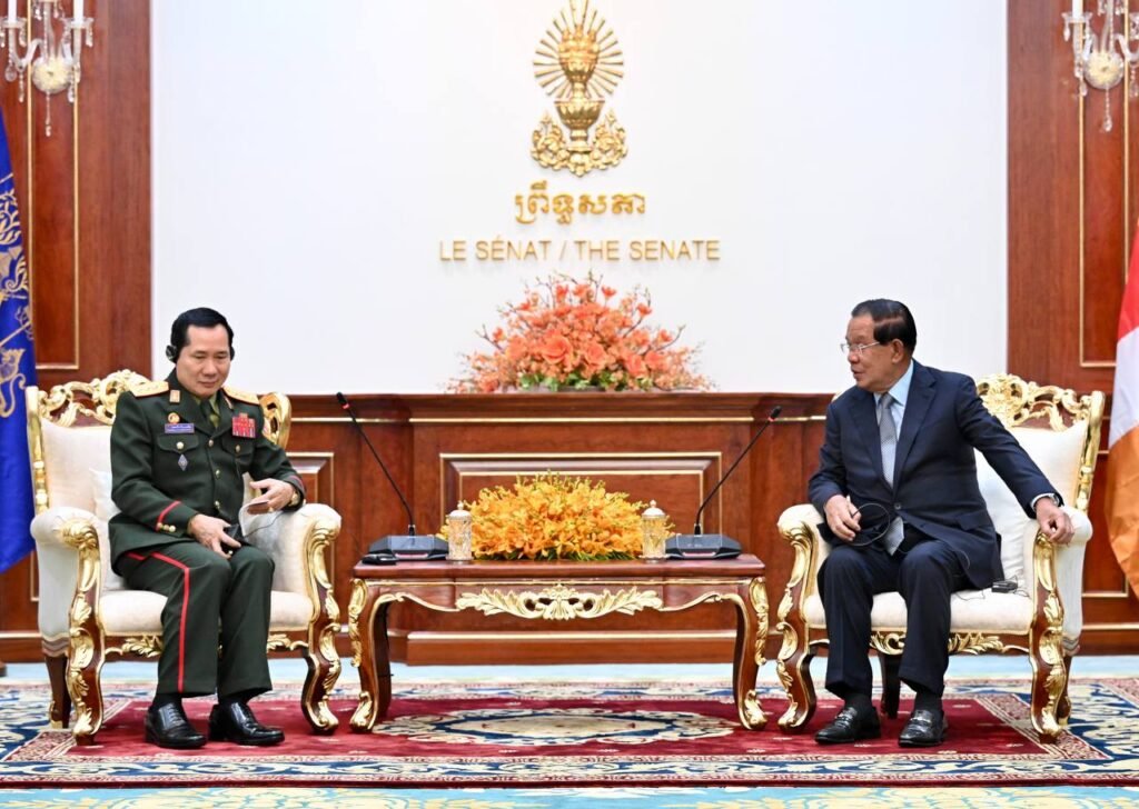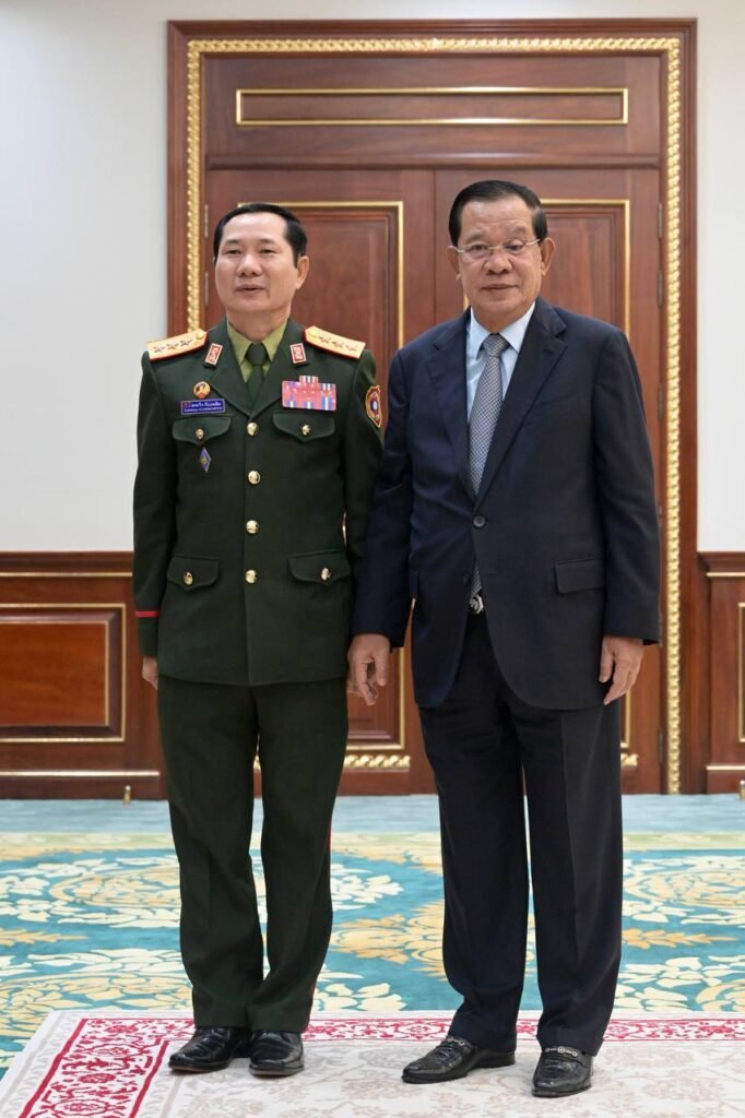 ក្នុងឱកាសជួបពិភាក្សាការងារជាមួយឯកឧត្ដមឧត្ដមសេនីយ៍ឯក សាយចៃ គុមម៉ាស៊ីត អនុរដ្ឋមន្ដ្រីក្រសួងការពារប្រទេសនិងជាប្រធានអគ្គសេនាធិការកងទ័ពប្រជាជនឡាវ នាព្រឹកថ្ងៃទី១៧ ខែកុម្ភៈឆ្នាំ២០២៦ នៅវិមានសាមគ្គីភាពនៃព្រឹទ្ធសភា សម្តេចតេជោ ហ៊ុន សែន ប្រធានព្រឹទ្ធសភា នៃព្រះរាជាណាចក្រកម្ពុជាបានបង្ហាញនូវភាពរីករាយចំពោះកិច្ចសហប្រតិបត្តិការដ៏ល្អនៅតាមព្រំដែនរវាងកម្ពុជានិងឡាវដែលមានមកជាមួយគ្នានាពេលកន្លងមក ហើយសម្តេចតេជោសង្ឃឹមនិងជំរុញបន្ថែមឱ្យអាជ្ញាធរក៏ដូចជាកងទ័ពនៃប្រទេសទាំងពីរកម្ពុជា-ឡាវធ្វើការជាមួយគ្នាបន្ថែមទៀតដើម្បីធ្វើយ៉ាងណារក្សានូវសន្តិភាព សន្តិសុខនៅតាមព្រំដែនឱ្យកាន់តែល្អប្រសើរបន្តទៀត។