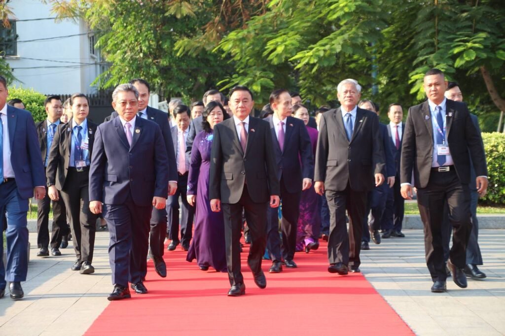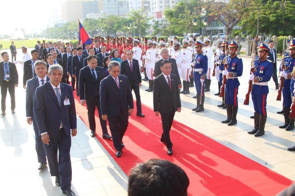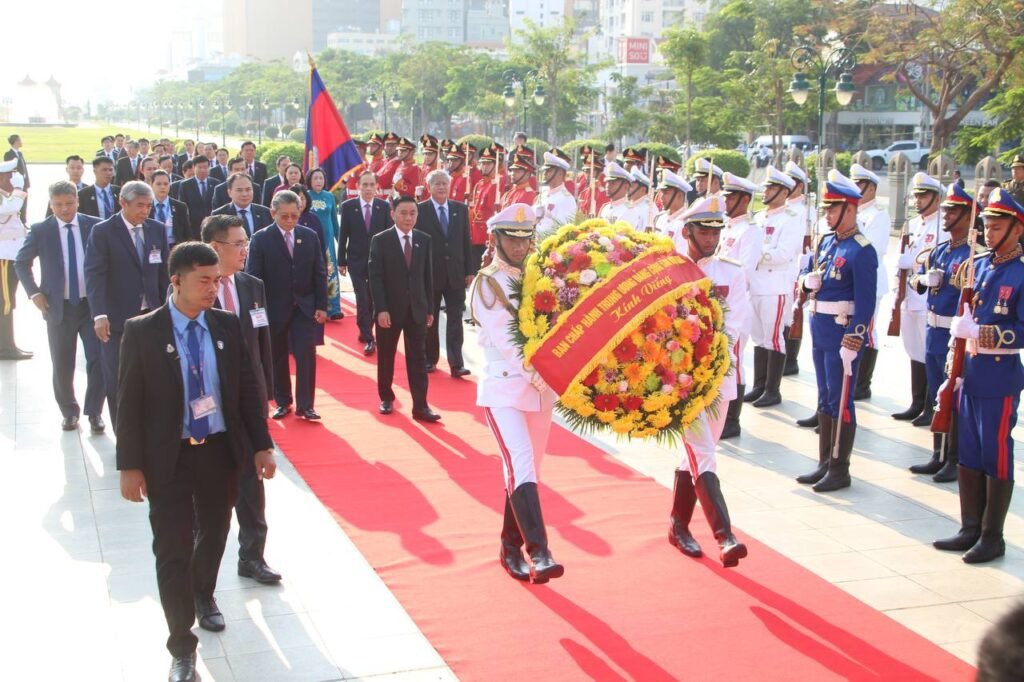 នៅព្រឹកថ្ងៃទី១០ ខែមេសា ឆ្នាំ២០២៦ ឯកឧត្តម ត្រិន កឹមទូ (Tran Cam Tu) សមាជិកការិយាល័យនយោបាយ និងជាសមាជិកប្រចាំការគណៈលេខាធិការមជ្ឈិមបក្សកុម្មុយនីស្តវៀតណាម និងគណៈប្រតិភូវៀតណាម បានអញ្ជើញមកបំពេញទស្សនកិច្ចផ្លូវការនៅព្រះរាជាណាចក្រកម្ពុជា ចាប់ពីថ្ងៃទី៩ ដល់ថ្ងៃទី១០ ខែមេសា ឆ្នាំ២០២៦ តបតាមការអញ្ជើញរបស់សម្តេចវិបុលសេនាភក្តី សាយ ឈុំ អនុប្រធានគណបក្ស និងជាប្រធានគណៈប្រចាំការនៃគណៈអចិន្ត្រៃយ៍គណៈកម្មាធិការកណ្តាលគណបក្សប្រជាជនកម្ពុជា។